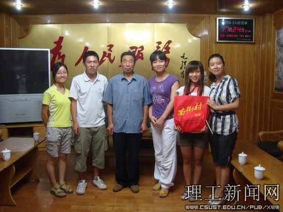在南街村实地调查中,实践团聂静、李青青、王健、范慧婷4位同学对“中国红色亿元村”南街村的历史发展轨迹、思想文明建设、工业发展、教育发展、医疗建设、信息建设、村民基础生活设施建设等多方面做了详实调查。团队成员采访了南街村党培办段林川、南街村计算机网络中心主任杨磊、南街村博士后流动工作实验室主任韩晓凯等,就农村建设理念、思想文明建设、技术人才引进等方面做了探讨,并分头走访多户村民,了解村民基本生活。“观红色文化、感集体优越”,在南街村,大家对此有了深刻的体会。在谈及大学生村官在基层工作遇到种种困难时,南街村党培办段林川主任指出“扎根农村、立足本职,融入基层组织,以专业知识影响部分人,用实际效果带动农村的建设与发展”的思路让大家思路顿开;南街村计算机网络中心主任杨磊则结合网络中心的工作情况,建议同学们在学好专业知识的同时,增强实际动手能力;参观博士后流动站的过程,同学们了解到了南街村集团与河南、湖北部分高校合作,实施“产学研”一体化、“校企合作”等策略产生的实际效益,增长见识的同时,体会到了培养动手实践能力的重要性和高校学生社会实践活动的意义所在。