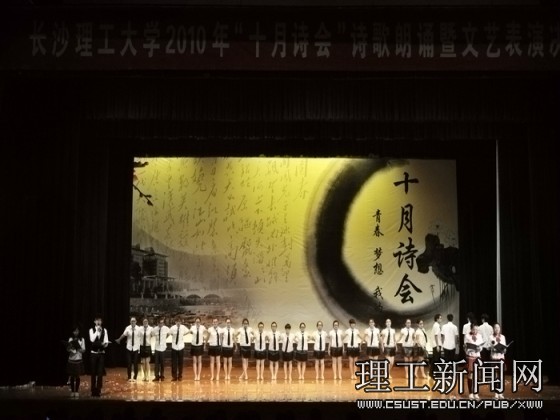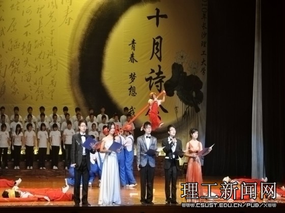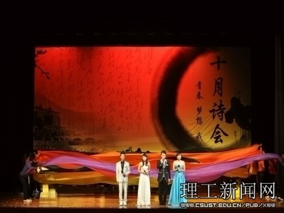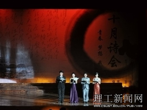 忆往昔峥嵘岁月,唱今朝青春梦想。威廉体育2010年“十月诗会” 诗歌朗诵暨文艺表演决赛圆满成功,最终文法学院勇摘桂冠。