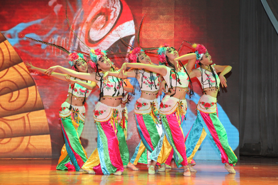 郭剑倾情演唱的《美丽家园》使现场气氛迅速升温。体育学院刘勇老师的太极拳表演展现出中华武术的力与美。宋菲菲等同学表演的新疆舞《掀起你的盖头来》将维族少女的娇俏灵动展现得淋漓尽致。胡巍老师的琵琶独奏《十面埋伏》嘈嘈切切,肃杀激越。藏族舞蹈《牛背摇篮》高难度的舞姿掀起了晚会的小高潮。小组唱《木叶声声吹》轻快活泼的曲调让人仿佛置身于苗家山寨树林间。器乐合奏《菊花台》伤感哀切的曲调配上一段男女双人舞,使整个舞台美轮美奂。之后,傣族舞蹈《赞哈》、男声独唱《草原上升起不落的太阳》、花鼓戏《刘海砍樵》、现代京剧舞《俏花旦》和女声独唱《亲吻祖国》依次上演,演出高潮迭起,观众掌声雷动。最后,演出在全体演员表演的舞蹈《爱我中华》中圆满落幕。