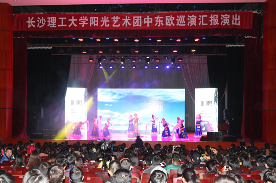 11月24日晚,“中华情·湖湘韵”阳光艺术团中东欧五国巡演汇报演出在云塘校区大会堂隆重上演。校党委书记付宏渊、校长赖明勇、常务副校长洪源渤、副校长黄立宏、谈传生,纪委书记胡永乐、副校长刘扬以及来校的港澳台嘉宾共2000多名师生共同观看了演出。