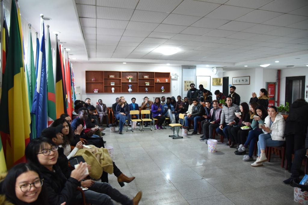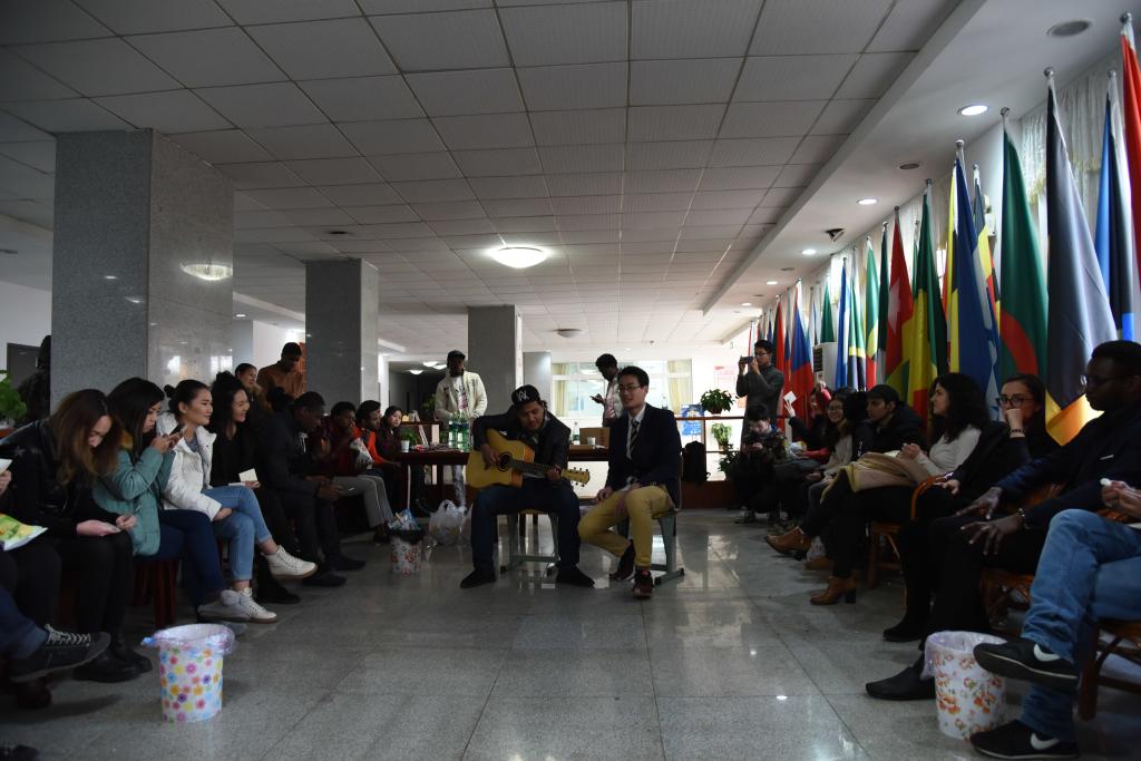 来自印度尼西亚的黄文明同学和来自基里巴斯的特巴诺同学吉他弹唱了中文歌曲《月亮代表我的心》,温馨愉快的茶话会拉开了序幕。他们的表演得到了热烈欢迎,在座全体同学都跟随他们的歌声一起歌唱。随后,每个同学在座位上轮流分享一个学期结束后的所见所感,以及自己对于新年、对于新学期的期待和希望。来自哈萨克斯坦的爱奖同学开心地表示,过去的一个学期每一天都很充实,还认识了很多新朋友;来自利比里亚的孙参同学则希望新的一年,要更努力学习,让自己的汉语水平能有更大的进步。