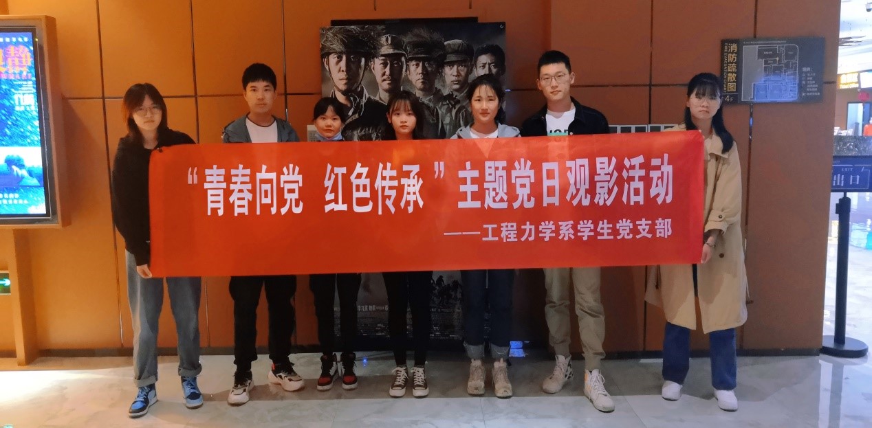11月17日,土木工程学院工程力学系学生党支部举行了“青春向党,红色传承”主题党日观影活动,支部全体学生党员观看抗美援朝题材电影《金刚川》。加强爱国主义教育,传承红色基因,结合习近平总书记在纪念中国人民志愿军抗美援朝出国作战70周年大会上的重要讲话,响应学院党总支深化“四史”学习教育的要求。