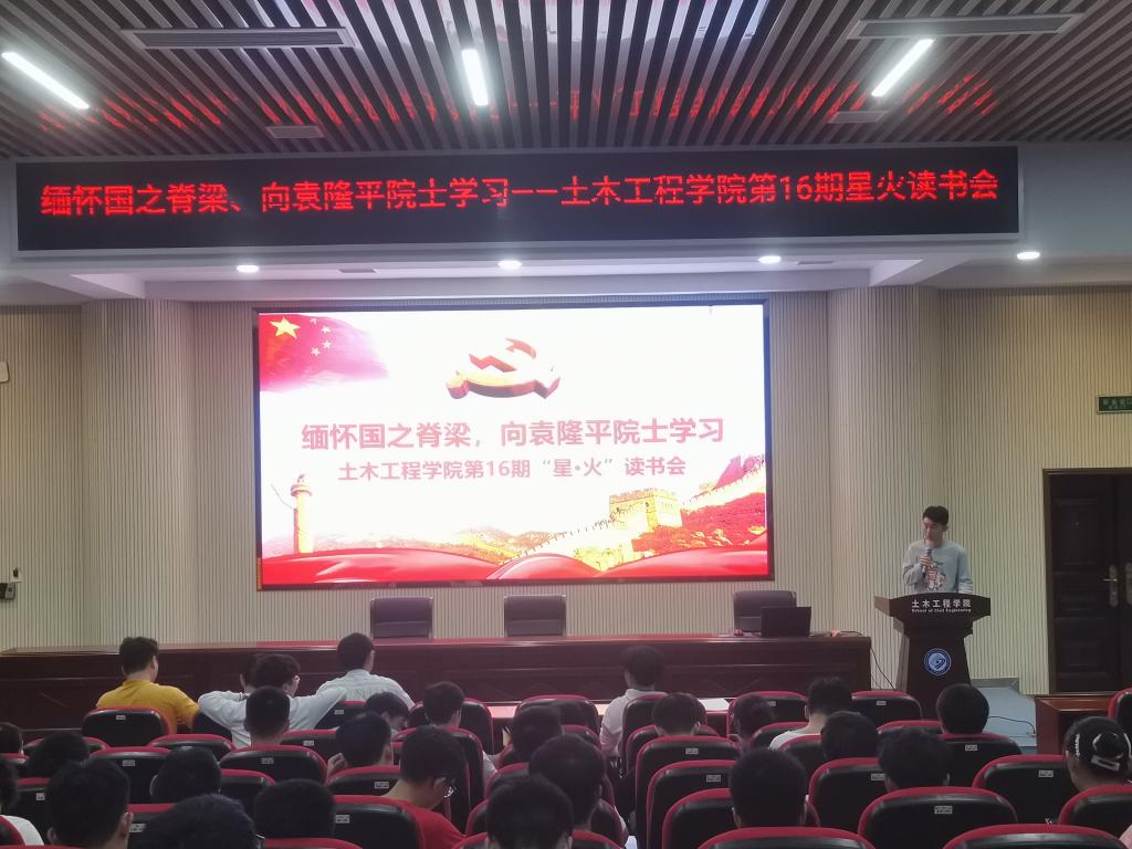 5月28日晚,土木学院分党校组织开展主题为“缅怀国之脊梁,向袁隆平院士学习”的第十六期“星火”读书会。院学生党建工作中心谭桧主持会议,第二十三期预备党员参加。