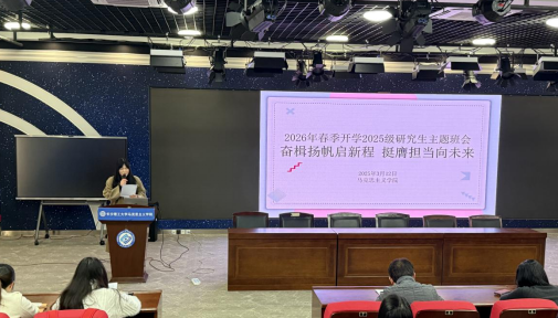 3月12日下午,马克思主义学院2025级研究生春季开学主题班会在云塘校区文科楼B300报告厅举行。本次班会以“奋楫扬帆启新程 挺膺担当向未来”为主题,学校党政办副主任喻玲,学院党委副书记李晓、辅导员曾蓓出席,学院2025级全体研究生参会。