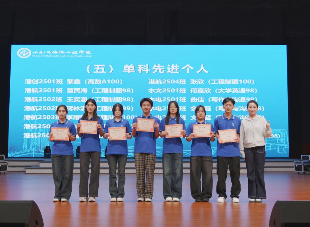 随后,三位优秀学生代表依次上台作学习经验分享。船海2501班余思琪(平均绩点3.99)分享了大学阶段的时间管理方法、自主学习规划技巧与心态调整心得;港创2501班黎鑫(高数满分)拆解了高等数学的学习逻辑,分享了课前预习、课中跟进、课后复盘的全流程学习方法;水文2501班何嘉欣(英语四级589分)分享了词汇积累、听力阅读、应试技巧的实用经验。三位同学的分享干货满满、贴合实际,为在场同学提供了清晰可落地的学习指引。