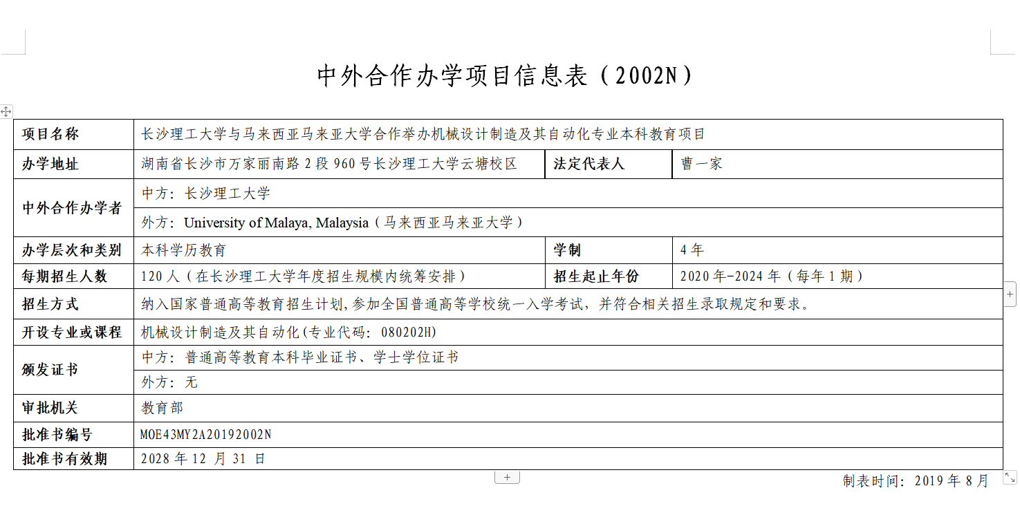 近日,教育部发文《教育部关于批准2019年上半年中外合作办学项目的通知》(教外函〔2019〕55号),共30个项目获得批准,威廉体育与马来亚大学(University of Malaya)合作举办的机械设计制造及其自动化专业本科教育项目位列其中,这是威廉体育继土木工程、电气工程及其自动化专业项目后从教育部获批的第3个中外合作办学项目,是威廉体育本科教育国际化办学上水平、上台阶的又一标志性成果。