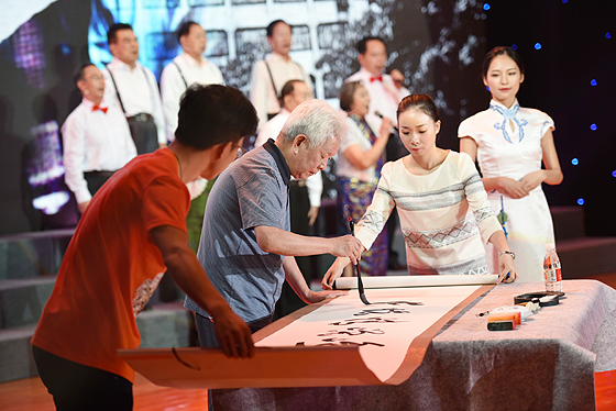 从扫把塘到云塘,从黄土岭到梅岭,在岁月浮沉之中,学校师生一直坚持进步。在第一篇章中,高纯一、费乐等十余位离退休老教师们一起讲述《甲子峥嵘》。伴随着老师们声情并茂的朗诵,一张张学校创办初期老师学生工作学习的老照片也出现在大屏幕上。85岁高龄的粟石恒老教授站在舞台上面向教过的学生,心潮澎湃,声音激昂。“在这里工作的30年是我最有尊严最有获得感的30年,长沙理工让我有机会施展才华,潜心育人教学。我就在这里坚守,放飞一代学子的梦想。”当今艺坛颇具影响的著名书法家王友智现场题字,“甲子风华百强梦”六个字既是对学生时代的怀念,也是对母校早日成为“双一流”大学的希冀。