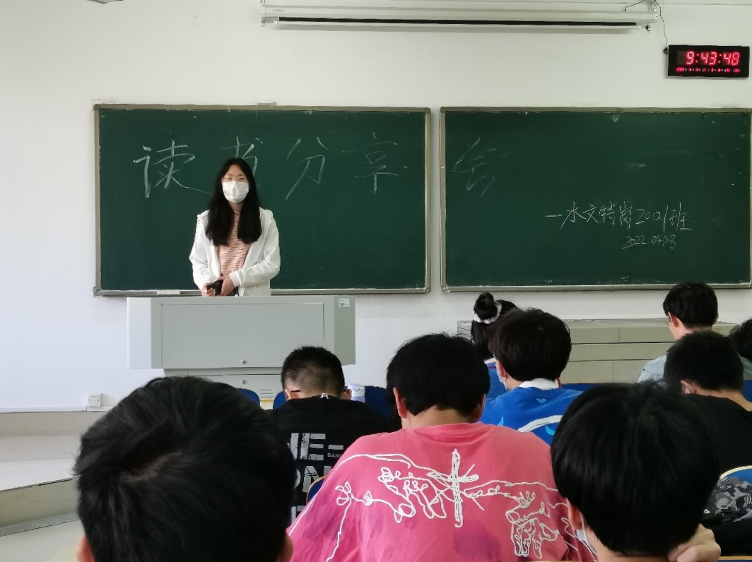 4月14日,水利学院在云塘校区综合教学楼A203教室举办了第三期特岗班“水润书香”读书分享会,此次会议由水文特岗2001班级承办,班长罗筱翔主持,水文特岗2001班全体同学参加。