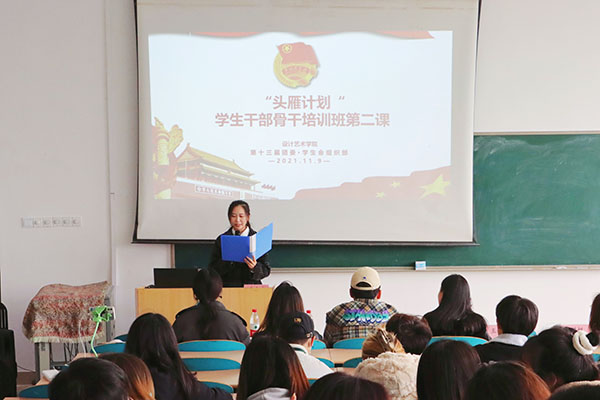 11月9日下午,设计艺术学院“头雁计划”第二期第二课分别于金盆岭12教215和云塘校区建筑艺术楼A102开展。文学与新闻传播学院研究生李楚帆同学,设计艺术学院第十二届团委·学生会执行主席张跃宗、樊明焱、李世成同学,数媒1903班团支书刘晓茹同学担任此次课程主讲人。本次课程由院学生会组织部常慧晰同学主持,第十三届团委·学生会主席团以及各年级学生干部共150余人参与。