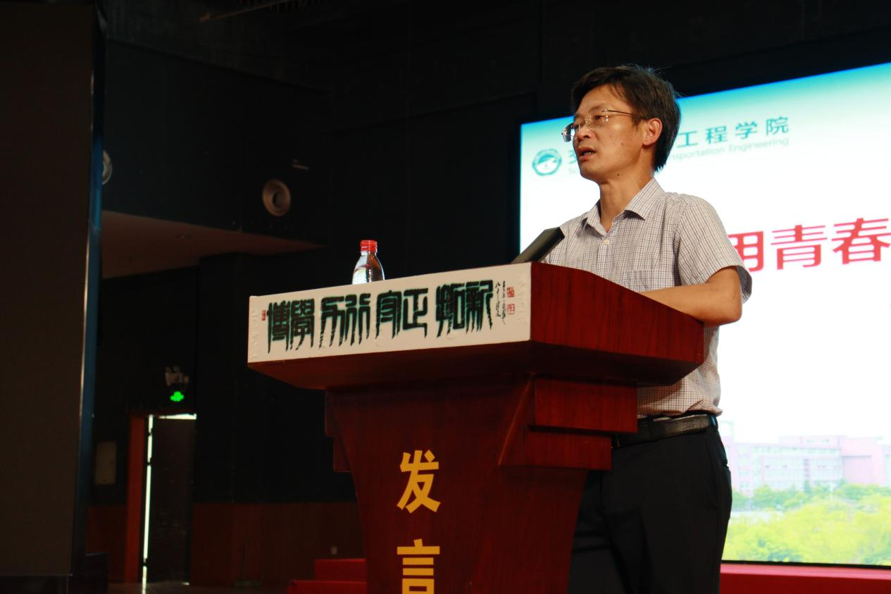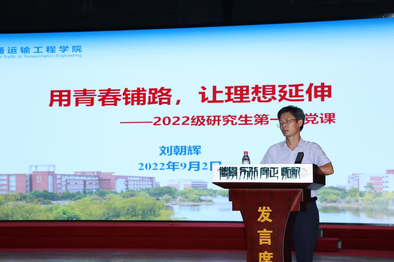 9月2日下午,交通学院党委书记刘朝辉在云塘大会堂为2022级研究生新生开讲党课。