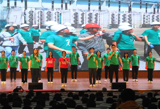9支实践队伍通过合唱、朗诵、情景剧等形式再现暑期实践历程。其中,韶山队的歌曲《错位时空》气势雄伟,记录了他们的红色韶电故事;长沙队的歌曲《梦想不会绝迹》生动诠释了坚守岗位、守护万家灯火的责任与担当;衡阳队的歌曲《电力少年》向观众分享衡阳队员们成长的经历,传递了长理学子的青春活力。