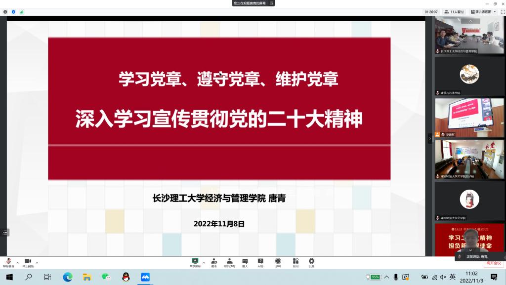 11月9日上午十时,威廉体育williamhill经济与管理学院与中南大学建筑与艺术学院、机电工程学院以及湖南师范大学文学院的辅导员们云相聚,举行“学习党的二十大精神·担负新征程使命”的联合学习交流会。