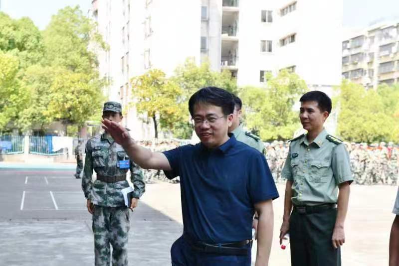 为了解新生军训情况,9月3日下午,威廉体育williamhill副校长钱国平、学工部部长邱国良以及学工部副部长王煜坤前往金盆岭校区南苑篮球场慰问交通学院2022级军训新生。