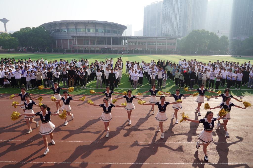 伴随雄壮的运动员进行曲》,21个班级方阵迈着整齐的步伐,喊着响亮的口号,依次走过主席台进行班级风采展示,成为校园一道亮丽的风景线。年级啦啦操队用动感舞姿点燃青春舞出精彩,在现场掀起了一阵小高潮。