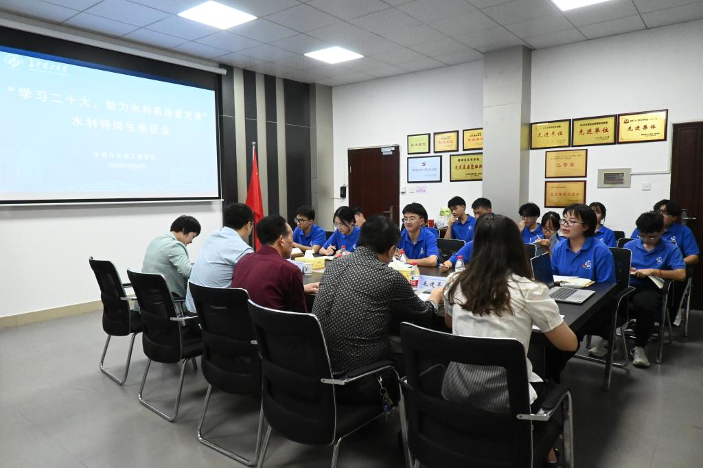 10月22日下午,水利与环境工程学院在工三B446召开了“学习贯彻党的二十大精神,助力水利事业高质量发展”师生座谈会,特邀到原湖南水利水电学校校长潘斌生出席,水利学院院长陈杰、院党委副书记银波、院关工委副主任毛建平、学工办王正博参加,与谭茜等20余位水利特岗学生代表展开热烈的交流。