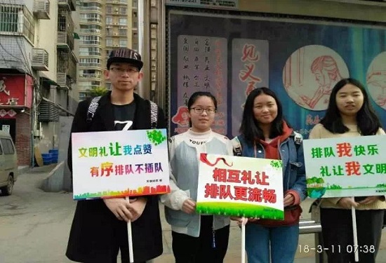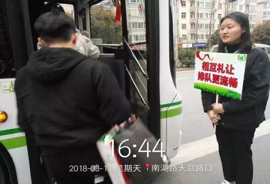 数统学院开展“文明礼让”公交站台秩序员志愿活动