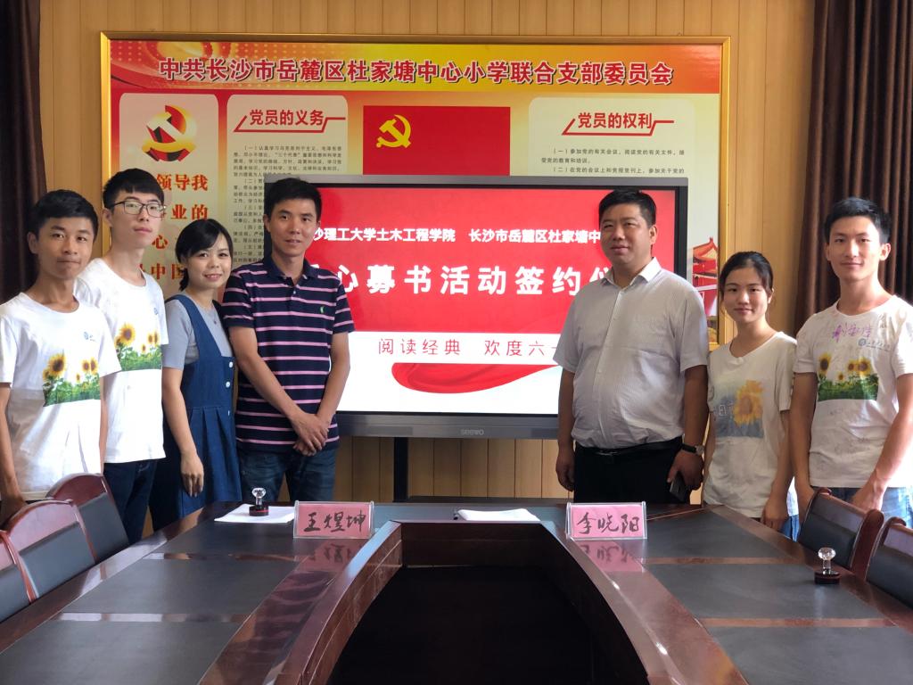 时值第69个六一国际儿童节,一场别样的签约仪式在杜家塘小学的会议室进行。土木工程学院党委副书记王煜坤与杜家塘小学校长李晓阳共同签署了爱心募书合作协议,携手为怀化边远地区儿童送上一份颇有意义的节日礼物。