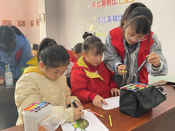 本次活动旨在通过手绘的方式提高孩子们对动物知识的了解,在实际操作中锻炼孩子们的色彩感知力,帮助孩子们提升情感表达和动手能力。“志愿者小老师”带领小朋友们一同观看了动物动画短片,科普了一系列“世界之最”的动物,并开展了绘画辅导。小朋友们选择了自己心仪的动物线稿,在志愿者们的耐心帮助下,孩子们拿起画笔发挥奇思妙想,运用灵动的色彩绘出了一幅幅动物画像。在欢声笑语中小朋友们手拿作品与志愿者们合影留念。