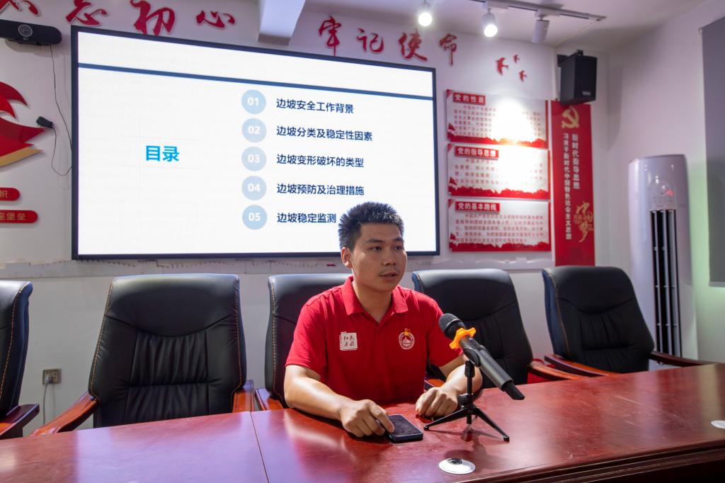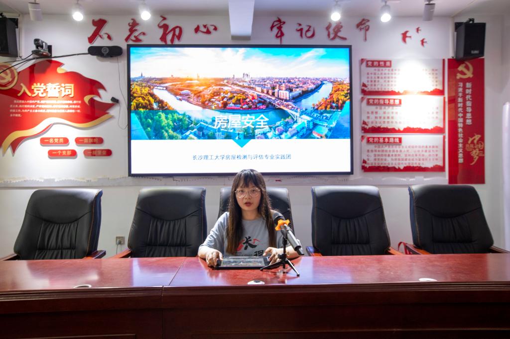 “有裂缝的房屋还可以继续居住吗?”“桥梁发生颤动还可以通行吗?”,博士实践团成员开讲前,先向村民抛出了几个问题。他们通过PPT讲解以及播放视频的形式,结合近期长沙自建房倒塌事故进行案例分析,用直观通俗的话语详细讲解了房屋、桥梁和边坡安全事故发生的诱因和征兆,以及相应的防治措施等关乎“平安乡村”建设的重要内容。向村民科普讲解了“五步排除法”,为村民快速自查房屋安全隐患提供了有效的方法。针对年久失修的桥梁,提出了安全风险建议,为农村自建房、桥梁隐患早预防、早发现、早治理提供了理论指导。
