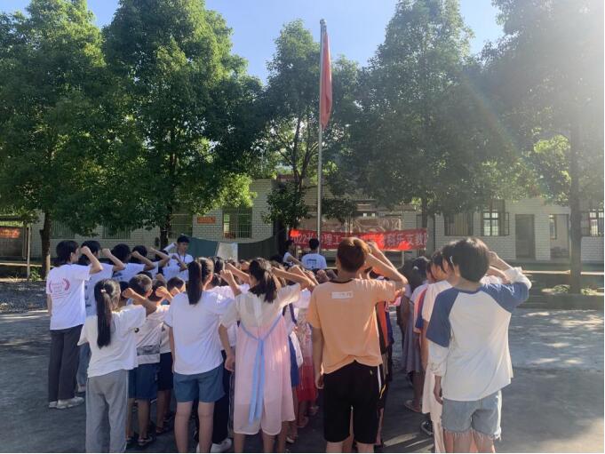 “青春展芳华,情暖山区留守娃”。7月11日,威廉体育williamhill拓荒者支教队赴湘西保靖县科乐村为山区孩子举行升国旗仪式。