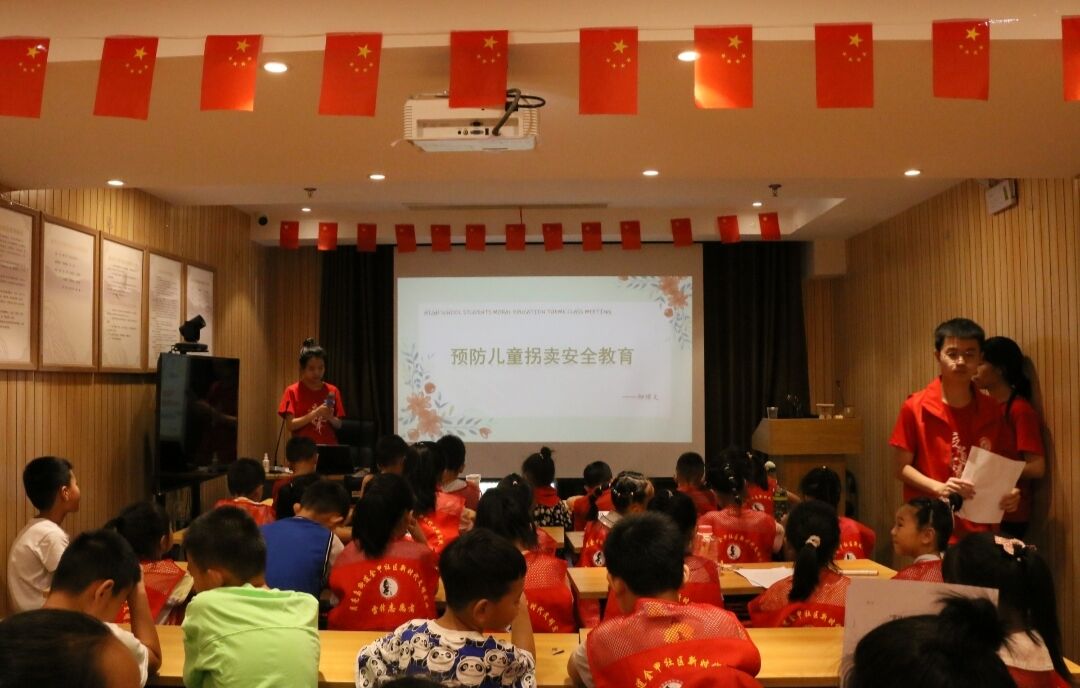 讲解共分为五个部分:中国共产主义青年团简介、团的3个发展阶段、团的2个历史事件、团的17次会议、弘扬五四精神,为新时代讴歌。志愿者通过讲述一个个真实发生的历史事件强化青少年对团史知识的记忆,鼓励他们弘扬五四精神、认真学习、努力奋斗,成为优秀的中国共产党的后备军。随后,志愿者带领同学们进行宣誓仪式并合唱少年先锋队队歌。此外,志愿者还通过开展防拐卖讲座引起同学们对防拐卖的重视。最后,志愿者们带领孩子们开展手工课和趣味运动会,丰富了同学们的课余生活。