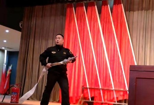 讲座结束,开展了逃生和灭火演练,在场新生用手或毛巾捂住口鼻,按照火场逃生要领,撤离到安全区域;在灭火演练中,教官指导新生现场灭火,现场操作灭火器扑灭火盆。