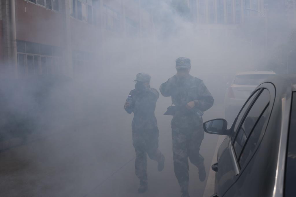 刘铁华结合诸多真实案例,揭示了导致火灾发生的原因和严重后果,向同学们讲解了消防安全预防、正确使用消防器材、火场安全疏散与逃生自救等知识。曾新贵结合校园多发性案件,向同学们重点讲解了常见各类诈骗手段、识别方法和紧急处置建议。同时,他教育同学们提高警惕,防止陷入校园贷、传销组织、财物被盗等案件发生。学院和保卫处工随后还组织同学们进行了火灾疏散逃生演练。