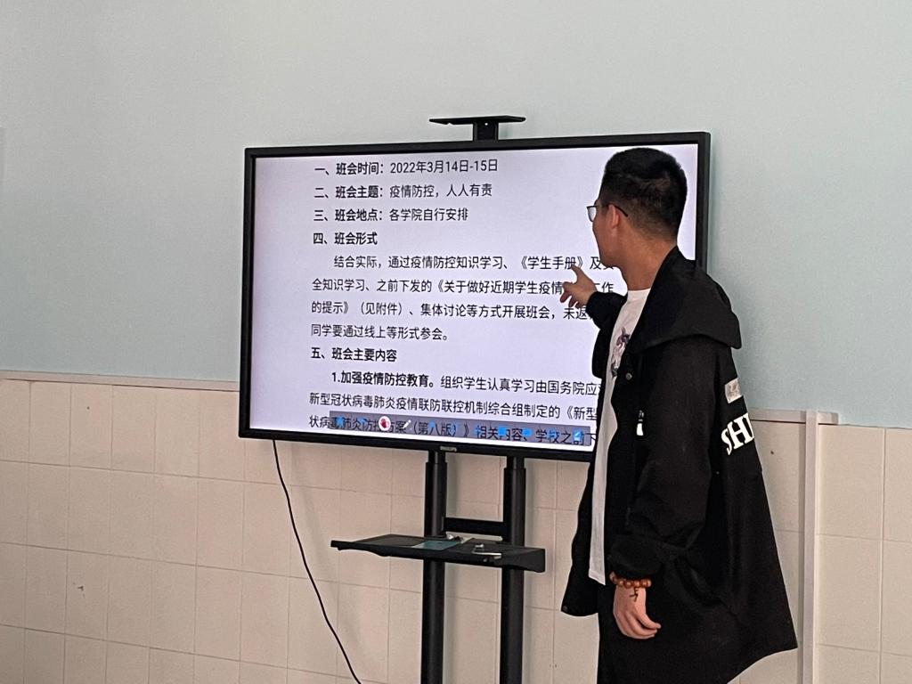 3月14日晚,建筑学院通过线上和线下相结合的方式,陆续组织各班召开了以“疫情防控 人人有责”为主题的新学期第一次主题班会,共覆盖学院21个行政班级,班会由各班班主任主持。