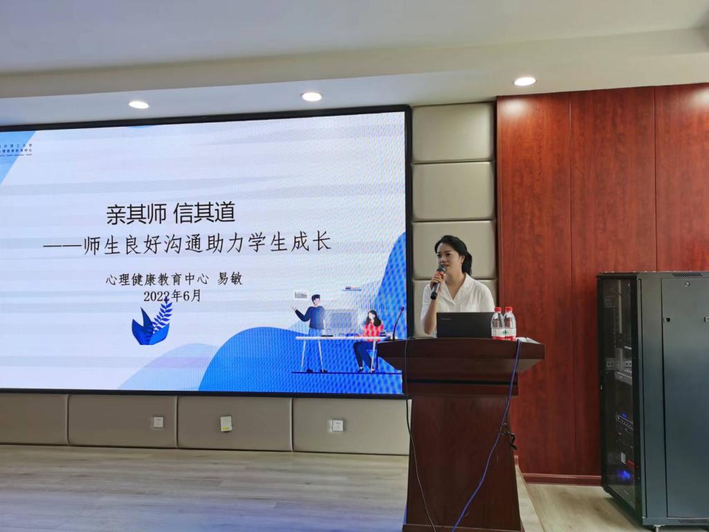 随后,易敏老师重点从“00后大学生特点和面对的压力问题”“良好沟通的助长条件”“特殊群体学生的识别和沟通技巧”方面,详细讲解了当代大学生的特点和面对的现实压力源、与学生“非暴力沟通”的方式和技巧,鼓励老师们要在与学生的沟通中多共情、倾听并尝试帮助学生“探索”,引导遇到困难的学生探寻积极生活所拥有的资源。最后,易敏老师带领老师们一起学习了抑郁症的九条判别标准以及与心理危机学生的沟通方式,帮助老师们正确认识心理危机,提升心理危机学生识别和沟通能力。