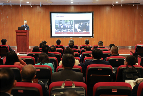 参观结束后,全体成员听取了湖南大学党委常委、宣传部长、马克思主义学院院长唐珍名教授所作的《岳麓书院与实事求是思想渊源》专题报告。了解了青年毛泽东将“实事求是”内化为认知方式、价值追求和实践品格的过程,习近平总书记提出“岳麓书院是党的实事求是思想路线策源地”这一重大理论创新的过程,加深了大家对“实事求是”历史渊源、重大意义的认识和理解。大家一致认为,马克思主义中国化必须与中华优秀历史文化相契合,才能更好地坚定“四个自信”,让信仰之火熊熊不息,让红色基因融入血脉,让红色精神激发力量。