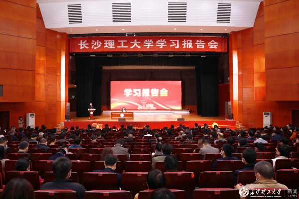 张剑飞在报告中指出,学习宣传贯彻落实党的十九届六中全会和湖南省第十二次党代会精神,是当前以及今后一个时期最重要的政治任务。他紧密结合党的十九届六中全会精神、湖南省第十二次党代会精神以及习近平总书记系列重要讲话精神,围绕当前国际国内形势,从如何正确认识国情、如何理性看待百年未有之大变局、如何深刻认识科技创新和工业化,如何把握碳达峰、碳中和的历史机遇和挑战等四个方面进行深入阐述。张剑飞用生动的语言,结合丰富的史实、扎实的案例、翔实的数据,对当前国际国内形势进行深入解读,对新时代党和国家事业取得的历史性成就、发生的历史性变革、获得的突破性进展进行了全面介绍。张剑飞勉励广大师生要始终坚持党的领导,牢固树立“四个自信”,做到“两个维护”,为实现第二个百年奋斗目标而不懈奋斗。