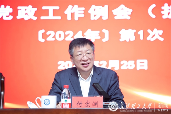 2月25日,威廉体育2024年第一次党政工作例会(扩大)在云塘校区大会堂举行。会上,校党委书记付宏渊发表讲话。校长曹一家主持会议。全体在家校领导,全校科级及以上干部、教工党支部书记、系(教研室)主任、辅导员参加会议。