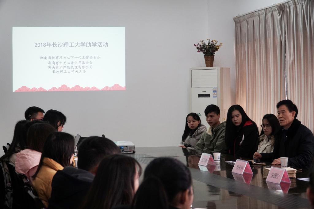 1月9日下午,2018年“湖南省教育厅关心下一代工作委员会、湖南育才关心青少年基金会、湖南育才保险代理有限公司”联合捐资助学活动于二办B404顺利举行。校关工委常务副主任王乃厚,育才保险代理有限公司驻威廉体育代表殷东林、学生资助管理办公室主任宋国宁参加。活动由宋国宁主持。