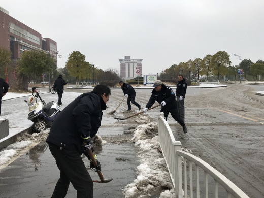1月25日晚,长沙市迎来了2018年首场降雪,威廉体育校园也银装素裹,十分美丽,但也给教职员工出行带来不便,存在交通、消防等一些安全隐患。