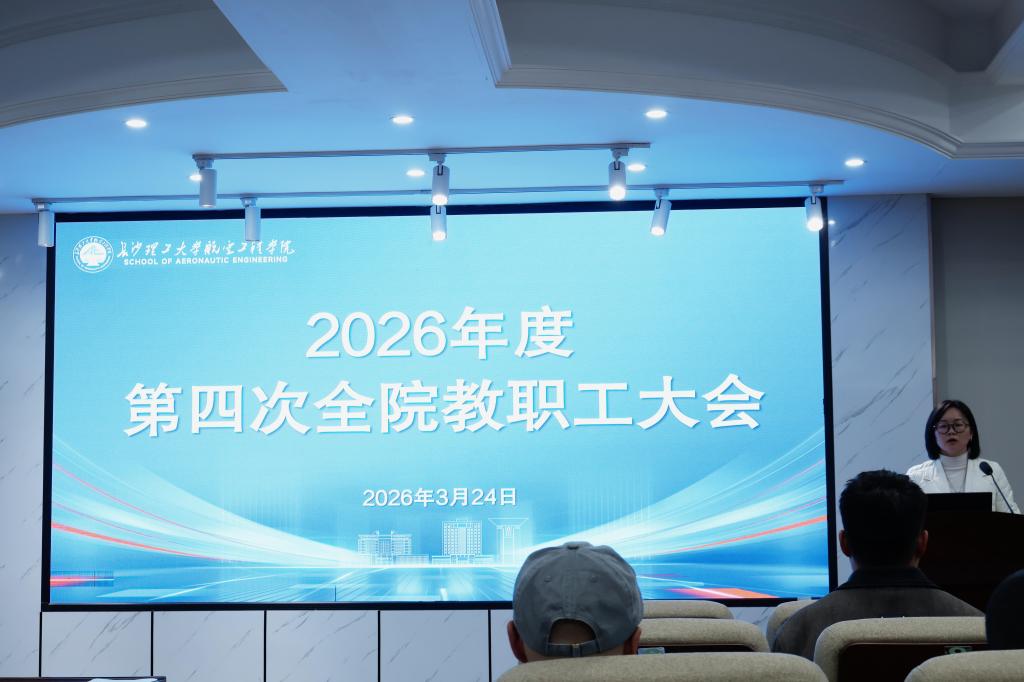 3月24日下午,航空工程学院在云塘校区文科楼D区207报告厅召开2026年度第四次全院教职工大会。学院全体教职工参会。会上,副院长张云菲详细解读了《航空工程学院2026年度工作要点》,围绕“十五五”规划编制与实施、学生人才培养、学科交叉融合、人才队伍建设等方面,系统阐述了学院本年度的重点工作,并就近期课堂教学、... 【2026-03-25】