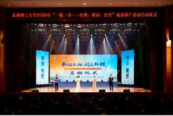 4月20日晚,云塘校区大会堂灯火璀璨、座无虚席,2026年 “一校一书——经典、精读、经世”阅读推广活动启动仪式在此举行。湖南省政协委员、湖南省图书馆学会理事长邹序明,湖南省高校图工委秘书长、湘潭大学图书馆馆长龚蛟腾,中华诗词学会朗诵艺术委员会专职委员吕铭,校学工部、研究生院、教务处、团委等单位相关负责... 【2026-04-21】