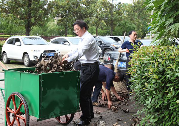 校领导带头参加校园义务劳动 加强爱国卫生工作