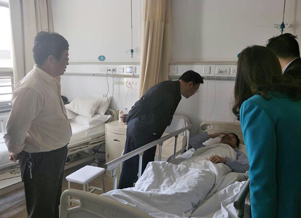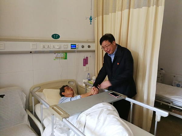 近三天来,校党委书记付宏渊,党委副书记邹宏如、副校长蒋昌波分别到医院看望利比里亚孔子学院黄柏青老师,党政办主任周艳红、组织部部长齐路良、宣传部部长邹兴平、国际交流处处长吴迪龙,校工会副主席赵爱群等领导陪同慰问。