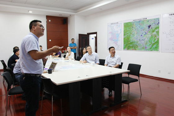洞庭湖水环境治理与生态修复湖南省重点实验室办公室主任邓斌作了关于省重点实验室科学研究、多媒体沙盘和智能控制中心建设进展等方面的汇报。