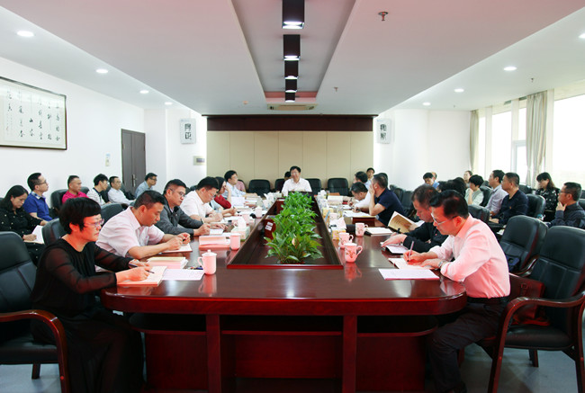 9月20日下午,党委中心组(扩大)围绕“明初心、守初心,矢志为民践宗旨”这一专题开展“不忘初心、牢记使命”主题教育第一次集中研讨交流。省委第十五巡回指导组组长段林毅到会指导并讲话。在前段自学和集中学习《习近平关于“不忘初心、牢记使命”主题教育重要论述选编》、《习近平新时代中国特色社会主义思想学习纲要》、习近平总书记关于湖南工作和教育工作重要指示批示精神等主题教育规定学习内容的基础上,校党委书记付宏渊,校党委副书记、校长曹一家,校党委副书记邹宏如在会上分别作了交流发言。