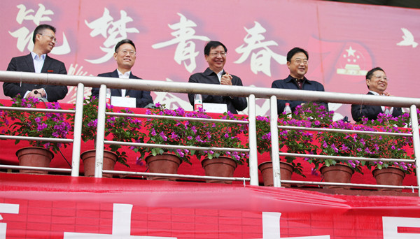 庄严的升旗仪式后,叶泽致开幕词。他指出,在新中国成立70周年之际,在全校上下深入推进“不忘初心、牢记使命”主题教育的重要时间节点,召开田径运动会不仅仅是一次竞技比赛,更是学校落实习近平总书记关于体育工作系列重要讲话精神,尤其是群众性体育工作要求的一次集中展示。他希望全体师生能够以此次运动会为契机,将体育锻炼作为一种良好习惯,将身体健康作为一种人生追求,继承和发扬拼搏竞争,循规守则、奋勇争先的体育精神,以更优异的成绩,助力“百强”大学建设!