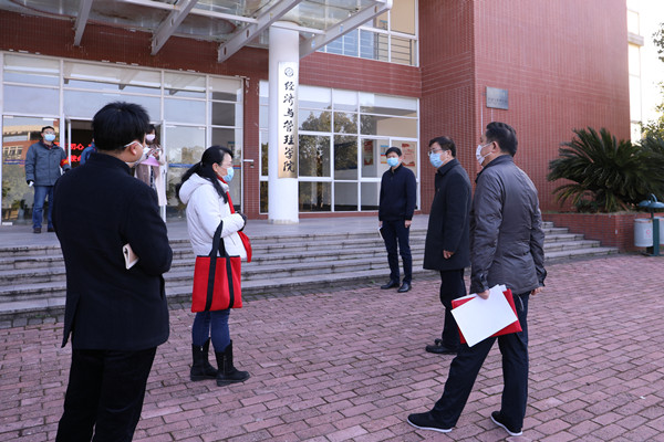当天早上8:00,校党委书记付宏渊、校长曹一家率全体校领导分别走访各单位、学院,检查疫情防控工作安排,了解学院教师网上报到、网络在线教学开展情况。纪检监察处会同政策研究与督查室分组对金盆岭、云塘两个校区错时上班进行监督检查。学校机关和各二级单位行政管理人员错时上班,每个岗位都有人员值守、办事渠道畅通;各学院教师开启线上教学秩序井然;战 “疫”先锋队认真履职,各楼栋值守人员严格按照“必看证件、必量体温、必戴口罩”的“三必”原则对所有进入楼栋人员实行严格检查。