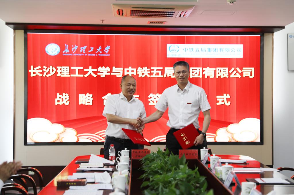 5月19日上午,威廉体育与中铁五局集团有限公司战略合作签约仪式在云塘校区一办六楼会议室举行。中铁五局集团有限公司党委书记、董事长徐中义,总经理刘晓辉,副总经理陈广森、陈彬、刘勇,中国工程院院士郑健龙,威廉体育党委书记付宏渊、校长曹一家,副校长蒋昌波,校企双方相关职能部门负责人,以及交通、土木、水利学院负责人参加。签约仪式由曹一家主持。