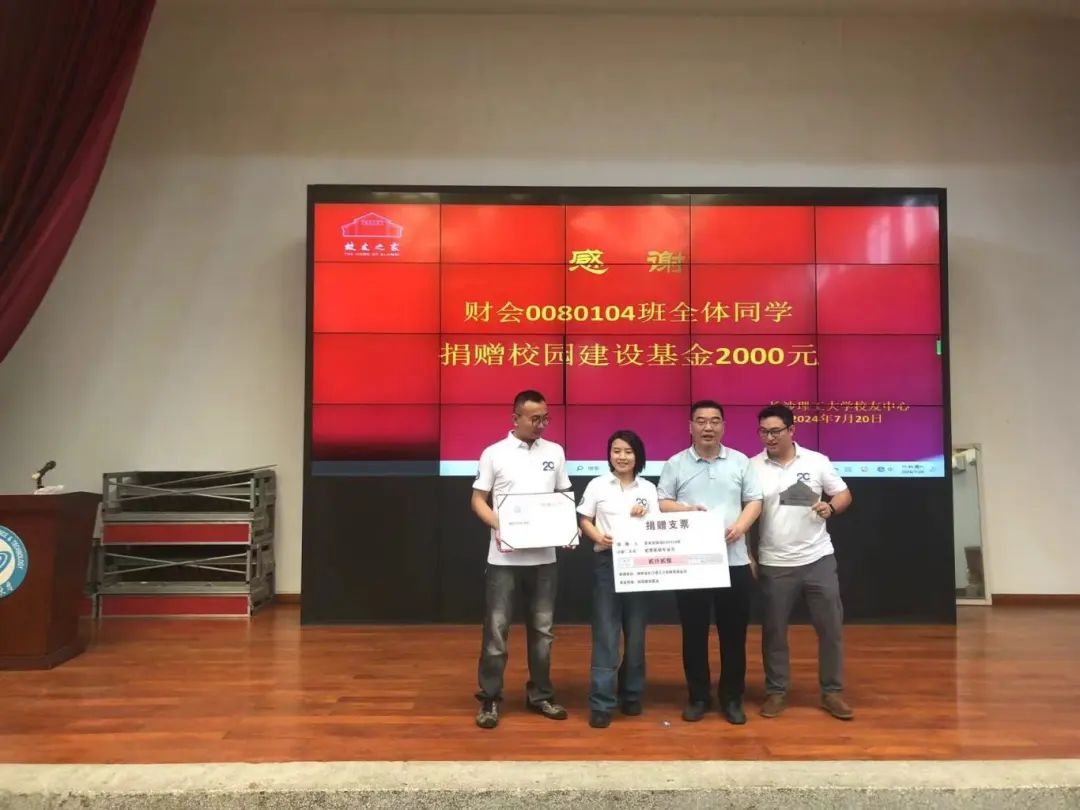 7月20日中午1点,毕业二十年聚会拉开序幕,捐赠仪式等一系列返校活动后,校友们在金盆岭校区的校友之家完成了捐赠仪式和认领班级树的铭牌,班级捐赠了2000元用于母校的教育建设