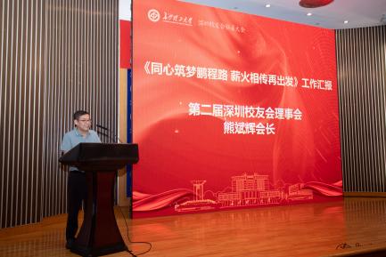 刘朝晖为大会致辞,对大会的举行表示热烈祝贺。第二届深圳校友会会长熊斌辉作《同心筑梦鹏程路,薪火相传再出发》工作汇报,回顾了深圳校友会过去五年的工作成果。谈传生宣读了校友总会关于深圳校友会换届的批复,现场通过了换届拟任名单。新当选的第三届深圳校友会会长欧阳峰作《情系云影湖畔,共筑湾区梦想》发言,并向广大校友发起“校友回湘”再动员,公布了深圳校友2025年回湘投资兴业的8个项目。