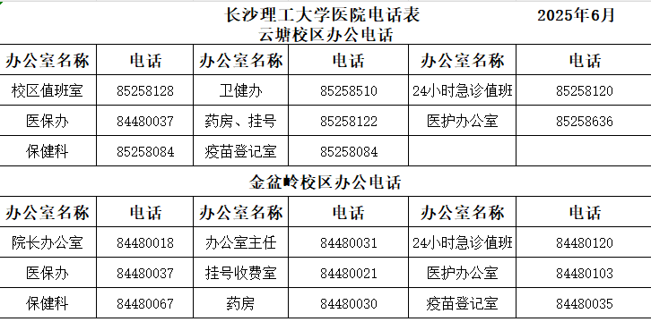 急诊值班:0731-82309120(金盆岭);0731-85258120(云塘) 传真:0731-85258375 电子邮箱:oslgdxyy@163.com