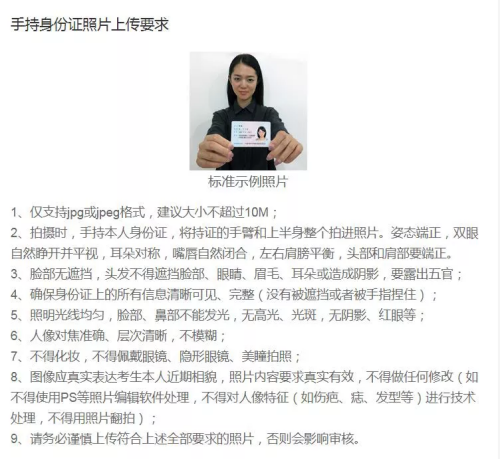 2.本人手持身份证照片,照片要求见下图: