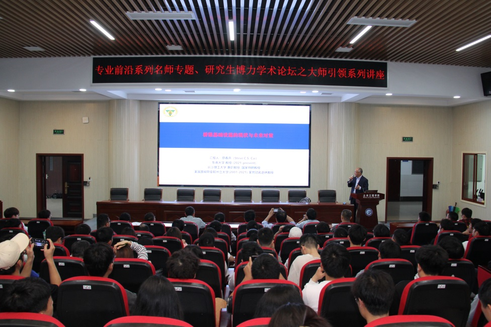 蔡春声教授的报告内容系统丰富,让土木工程学院的老师和同学们在短短的2个小时的时间内全面地了解了现今土木工程领域的前沿研究现状,受益匪浅。同时蔡教授的报告逻辑思路清晰、表述生动准确,全场同学反响热烈。