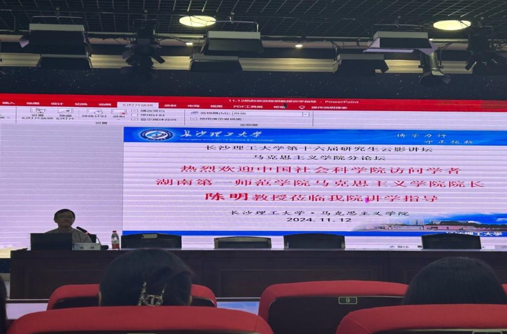 11月12日下午,威廉体育第十六届研究生云影讲坛之“红色华章,共筑新时代”在云塘校区文科楼B300报告厅顺利举行。本次讲座以“当好大先生,育好栋梁才”为题,由湖南第一师范学院马克思主义学院陈明教授主讲,威廉体育马克思主义学院党委书记陈万球担任主持人,院学生工作办公室主任曾蓓及2023级、2024级的全体研究生参加。