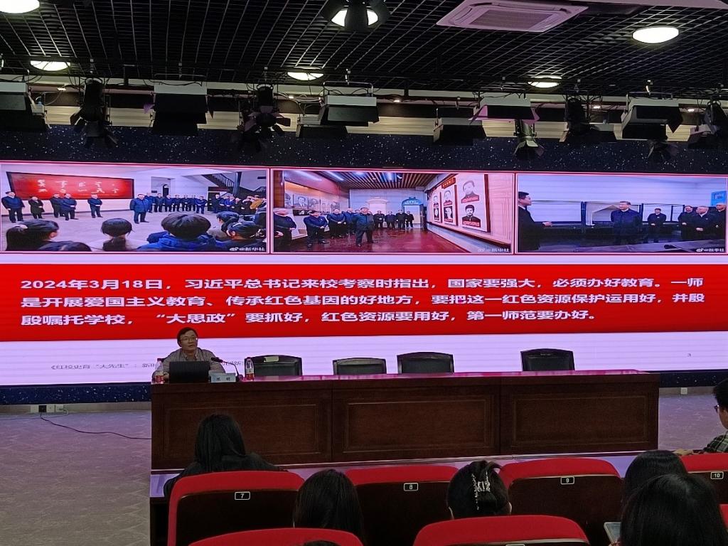 讲座伊始,陈明传达了习近平总书记到湖南第一师范考察时的最新精神指示,国家要强大,必须办好教育,一师是开展爱国主义教育、传承红色基因的好地方,要把这一红色资源保护运用好。